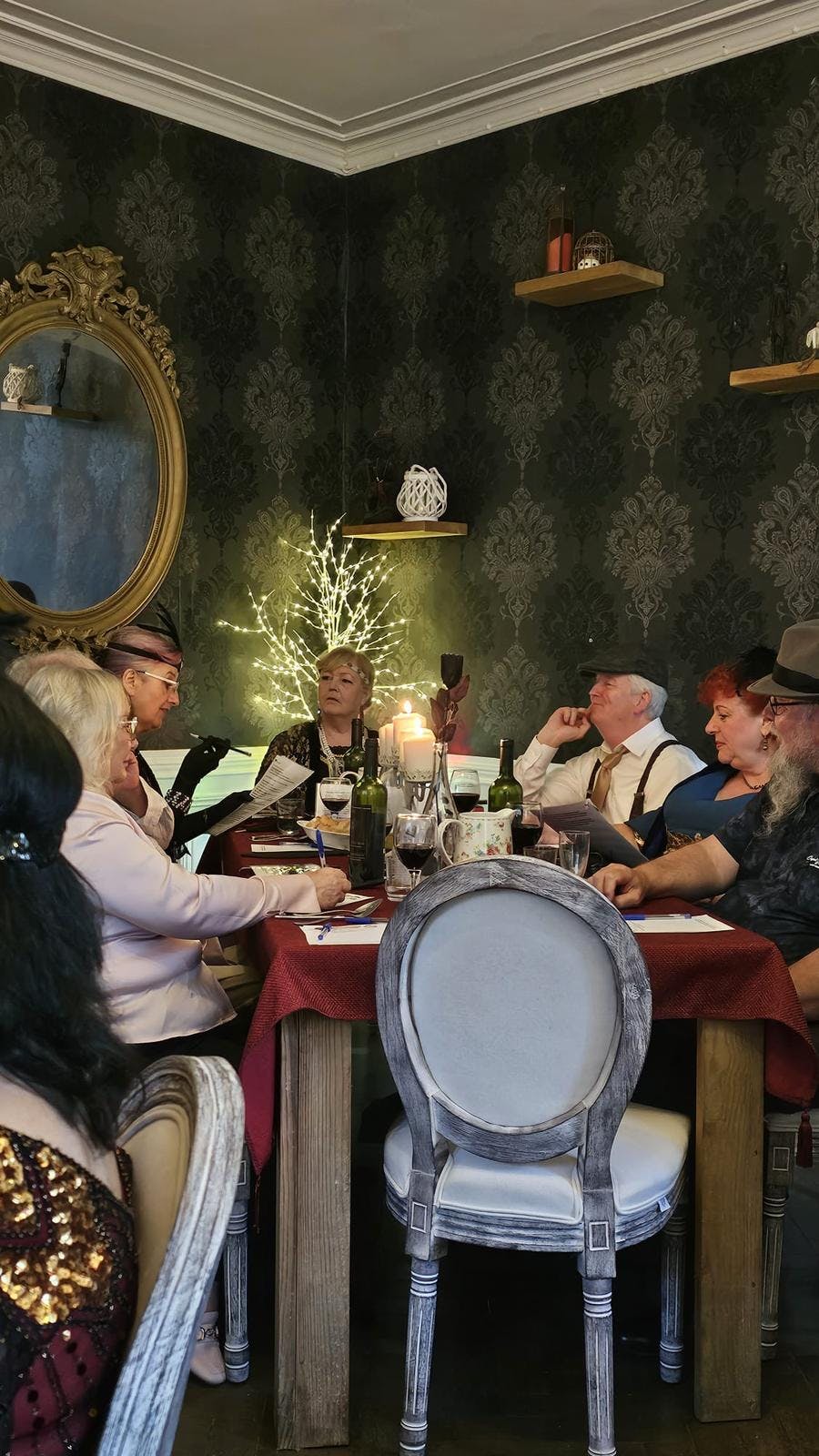Una serata sontuosa con cibo delizioso, vino pregiato e mistero, poiché gli ospiti sono sospettati di omicidio.